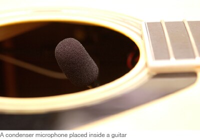 It can also be played as a regular guitar-no power required! A condenser microphone is capable of clearly picking up even high-pitched sounds. The microphone is set on the guitar in such a way that it picks the sound up from within the body, so it is easy for howling to occur.