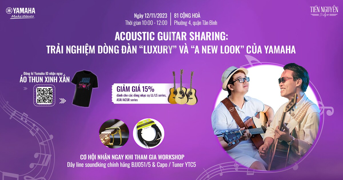 Nếu chỉ xem qua video, thật khó cho bạn hiểu được về 2 cây đàn nổi bật nhất của dòng đàn LL Series và A Series. Vì thế, buổi Acoustic Guitar Sharing của Yamaha đồng tổ chức bởi Tiến Nguyễn Music sẽ là nơi để bạn tận tay tận mắt trải nghiệm đàn cũng như tự do chia sẻ và đặt câu hỏi cho những Host đặc biệt của chương trình!