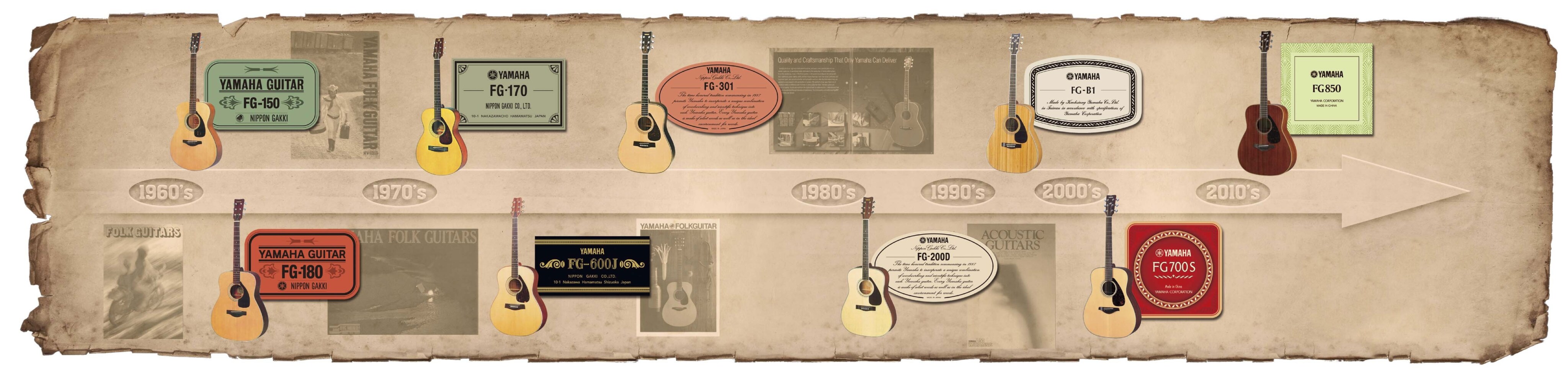 Lịch sử của dòng đàn guitar Yamaha FG bắt đầu vào năm 1966 với việc phát hành FG180 và FG150. Trong hơn 50 năm kể từ khi được giới thiệu, Yamaha đã phát triển và sản xuất nhiều thế hệ FG - tất cả đều biến FG thành âm thanh lý tưởng cho người chơi đương đại. Cho đến nay đã có tất cả hơn 200 mẫu đàn guitar acoustic FG kể từ năm 1966.