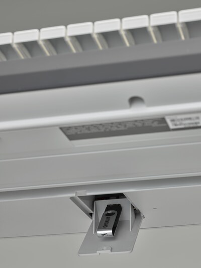 Đàn organ Genos tích hợp ba cổng USB TO DEVICE (một trên bảng điều khiển, một ở mặt sau, một ở mặt dưới) hỗ trợ bạn lưu trữ dữ liệu.