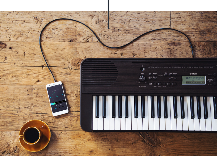 Kết nối máy nghe nhạc với đàn và hãy thưởng thức âm nhạc yêu thích của bạn phát ra từ loa của nhạc cụ. Hãy biểu diễn cùng và cảm nhận như đang trình diễn với ban nhạc thực thụ.
