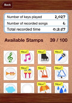 Trình thu Music Recorder thưởng cho trẻ bằng các phiếu tem. Càng tập luyện nhiều, trẻ càng nhận được nhiều tem.