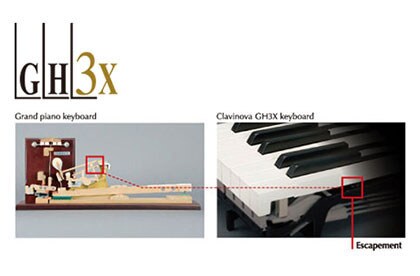 - Bàn phím GH3X (Graded Hammer 3X) với các phím mô phỏng gỗ mun và ngà voi tổng hợp