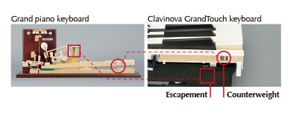 Cơ chế thoát Escapement trong cây piano cơ di chuyển các búa đàn ra khỏi các dây đàn nhanh chóng để ngăn chặn bất cứ sự can thiệp nào đến dây rung. Cơ chế này tạo cảm giác nhanh nhạy khi các phím được nhấn nhẹ nhàng. Kể từ khi tính năng Real Grand Expression ra đời, mang đến cho người chơi âm thanh, độ nhạy phím và pedal tuyệt vời, Yamaha đã quyết định tiếp tục tạo ra cơ chế Escapement mang lại khả năng chơi, lặp lại và phản ứng nổi bật mà không làm cản trở màn trình diễn. Bàn phím piano điện Clavinova tích hợp động cơ Escapement giúp tái tạo cảm giác này ở gần cuối mỗi lần nhấn phím. Chúng được thiết kế theo cách mà chỉ cần nhấn nhẹ là có thể cảm nhận rõ, tương tự như bàn phím đại dương cầm. Những bàn phím này đã được tinh chỉnh để cung cấp thêm ma sát giúp cân bằng vòng lặp và phản ứng của các phím đàn mà không làm gián đoạn màn trình diễn.
