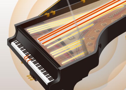 Ở một cây đại dương cầm, dây đàn và tiếng đàn cộng hưởng khắp toàn bộ thân đàn tạo ra âm vang dày, khiến thính giả được bao trùm trong âm nhạc. Không chỉ có dây bạn bấm mới rung, mà các dây khác cũng rung lên theo phản ứng với các dây bạn bấm. Đây là một trong các lý do khiến tiếng đàn piano phong phú đa dạng đến vậy.