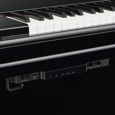 Bộ phận điều khiển được thiết kế tinh vi kết hợp hài hòa với cây đàn piano và đơn giản hóa việc vận hành.
