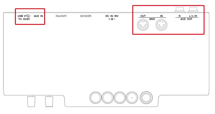 Cổng kết nối USB TO HOST cho phép bạn kết nối với máy tính hoặc thiết bị di động và ghi lại âm thanh chất lượng cao mà không cần giao diện bổ sung, trong khi AUX OUT cho phép xuất âm thanh ra nhiều thiết bị bên ngoài (ví dụ: các thiết âm thanh vòm, máy ghi âm IC, loa tích hợp bộ khuếch đại, hệ thống âm thanh nổi) và AUX IN cho phép nghe âm thanh từ các thiết bị bên ngoài (mô-đun nguồn âm thanh và máy nghe nhạc). MIDI OUTPUT truyền thông tin hiệu suất đến các thiết bị bên ngoài như bộ tổng hợp. MIDI IN cho phép nhạc cụ nhận và phát lại thông tin hiệu suất từ các bộ trình tự bằng cách sử dụng bộ tạo âm của loại SILENT Piano™ SH2.