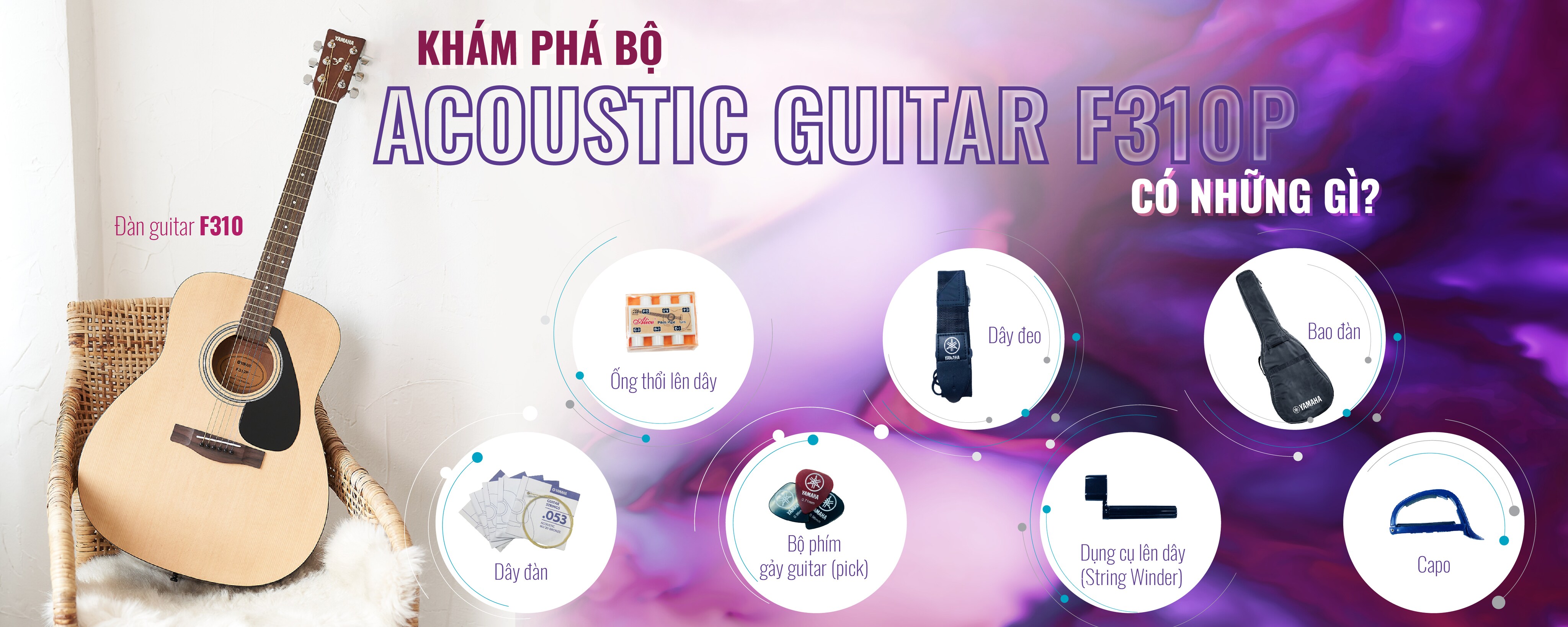 Bao gồm 1 cây đàn guitar F310 cùng 7 phụ kiện cần – phải – có cho người mới bắt đầu, F310P được xem là bộ acoustic guitar chất lượng, tiện lợi và tiết kiệm nhất từ Yamaha Music!