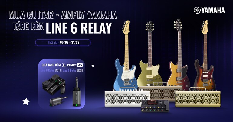 - Thông tin quà tặng: Khi mua sản phẩm đàn guitar điện hoặc thiết bị âm thanh tại Yamaha, khách hàng sẽ có cơ hội nhận được phần quà là Bộ thu phát tín hiệu không dây Line 6 Relay G10T và Line 6 Relay G10S