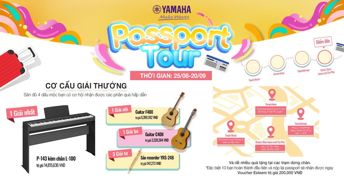 Mùa hè năng động là thời gian không thể thiếu những cuộc hành trình phiêu lưu, khám phá mạo hiểm và đặc biệt, những giai điệu vui tươi bất tận. Nếu bạn đang trăn trở không biết nên thực hiện những điều gì và muốn tận hưởng ngày hè một cách thú vị, thì những người yêu âm nhạc có thể đồng hành cùng Yamaha Music trong một trò chơi mang tên "PASSPORT TOUR".