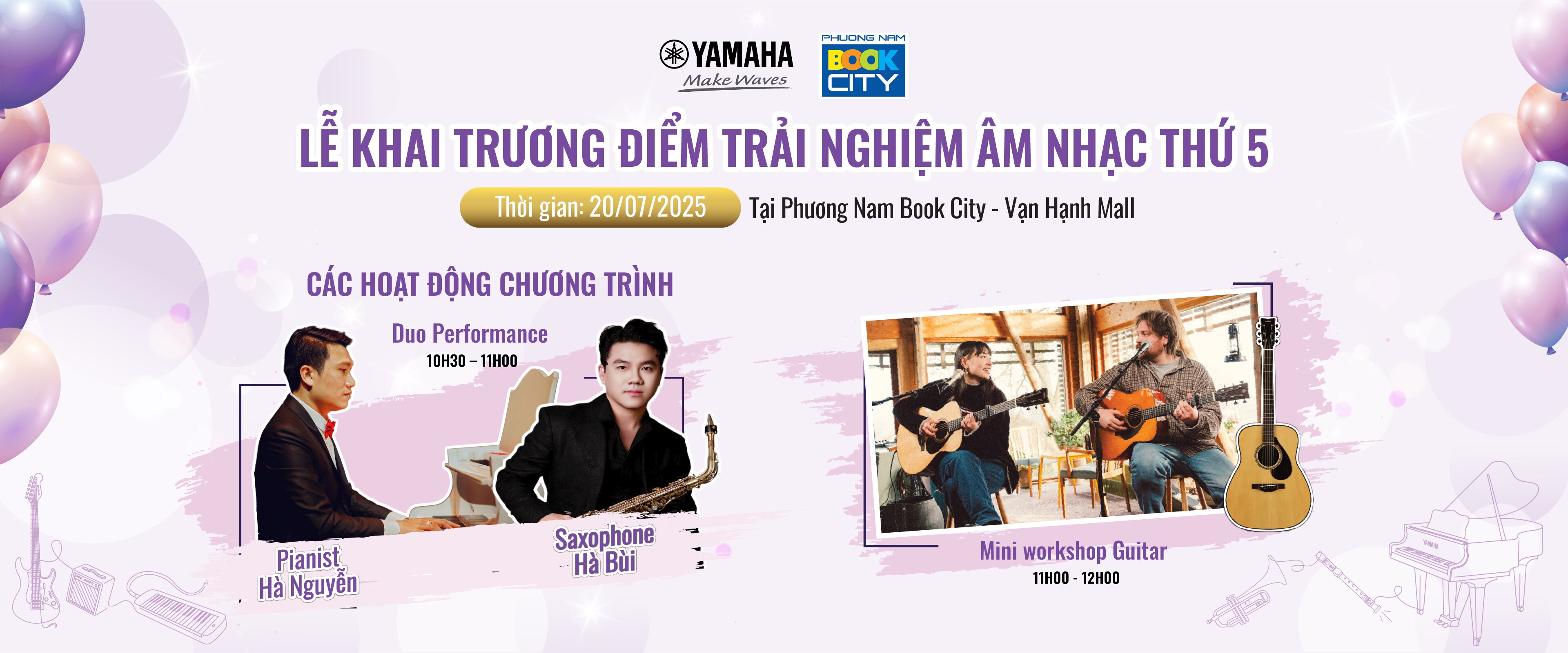 Ngày 20/07/2025, Yamaha Music Vietnam sẽ chính thức khai trương Điểm Trải Nghiệm Âm Nhạc thứ 5 tại Phương Nam Book City, Vạn Hạnh Mall. Đây là cột mốc quan trọng tiếp tục khẳng định sứ mệnh lan tỏa giá trị tích cực thông qua âm nhạc và tri thức, mang đến không gian văn hóa đầy cảm hứng cho cộng đồng yêu nhạc và yêu sách.