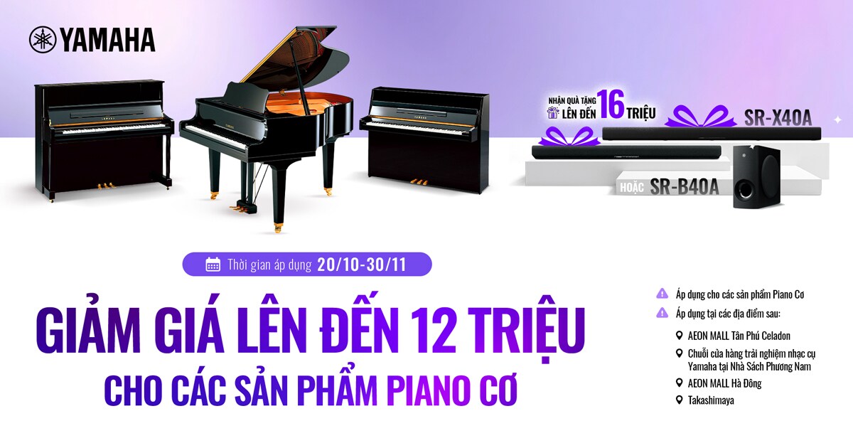 Yamaha Music mang đến ưu đãi lớn – ưu đãi lên đến 12 triệu đồng dành riêng cho sản phẩm Piano cơ kèm quà tặng lên đến 16 triệu đồng khi mua sản phẩm!