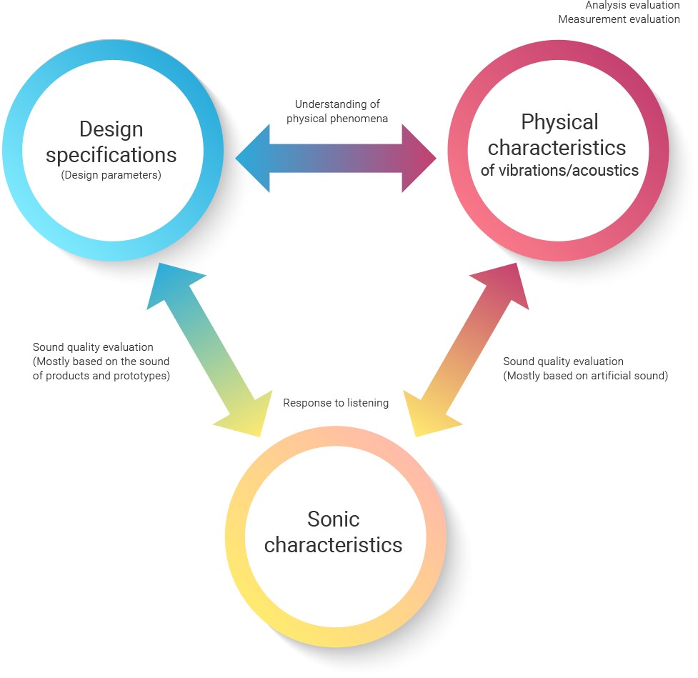 Trong phát triển sản phẩm về mặt âm thanh, Hãng không ngừng nỗ lực để xác định và lượng hóa tương quan giữa các thông số thiết kế và độ rung, và giữa các đặc tính vật lý của vật thể với đặc tính âm thanh của chúng.
