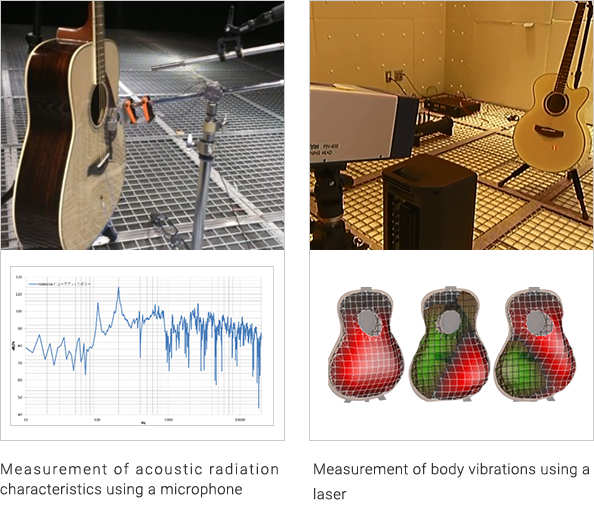 Để hỗ trợ cho kinh nghiệm của các nhà thiết kế và chế tác đàn guitar, Yamaha nỗ lực để tổ chức và xác định mối quan hệ giữa các yếu tố thiết kế của đàn guitar với đặc tính âm thanh của chúng. Hãng áp dụng các kỹ thuật đo lường và phân tích số liệu đối chiếu với bí quyết của các nhà thiết kế và thợ làm đàn nhằm thể hiện trực quan của các đặc tính âm thanh và độ rung, cũng như xác định thay đổi nào trong những yếu tố thiết kế nhất định sẽ tạo ra các đặc tính về chất âm cụ thể.